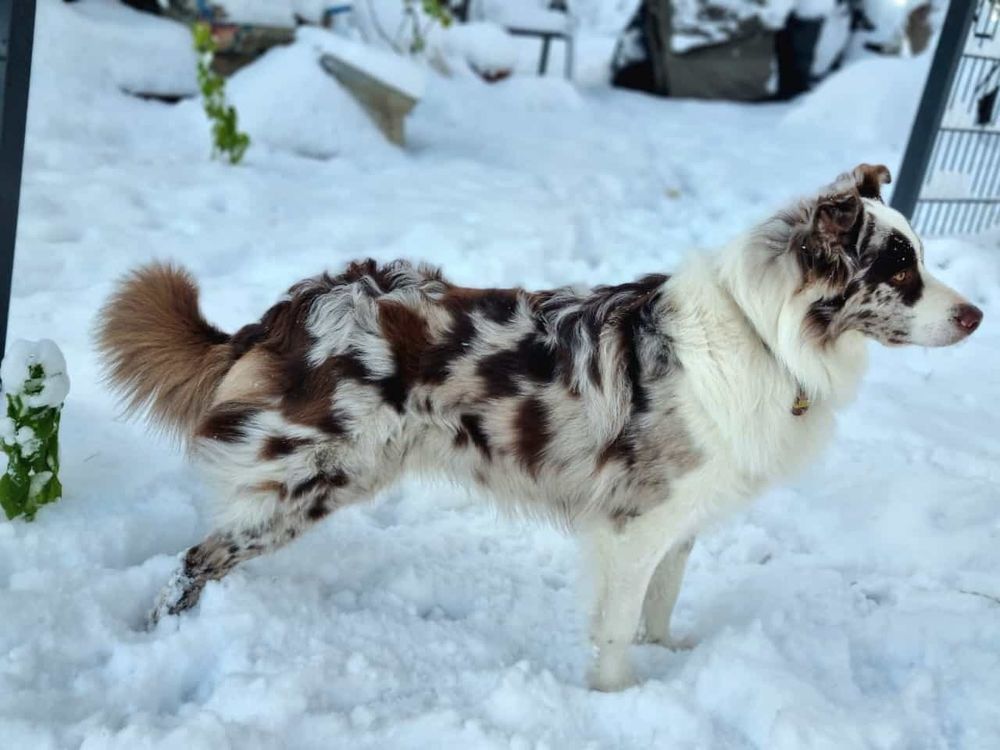 Hündin / blue merle w / lange Rute / 287 Gramm