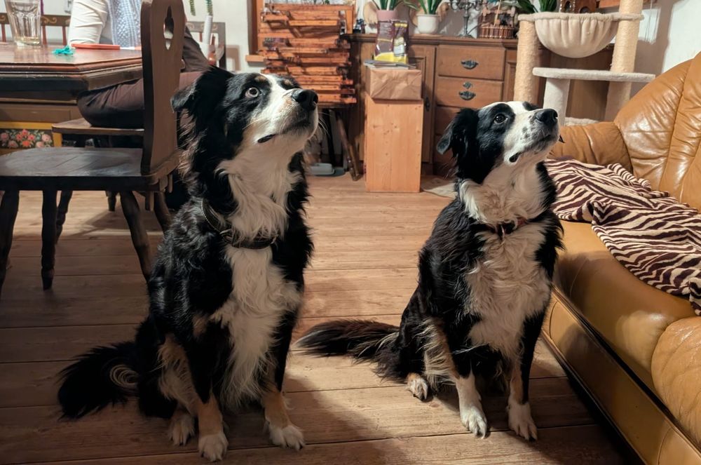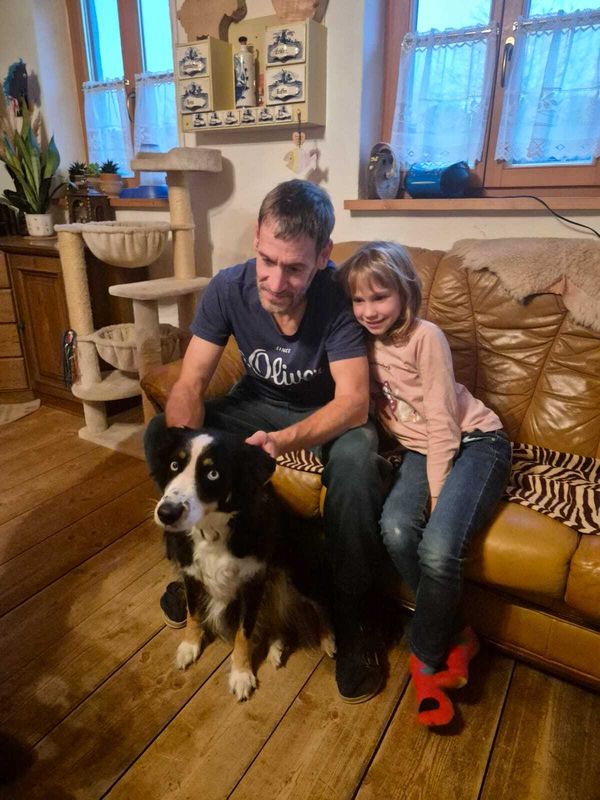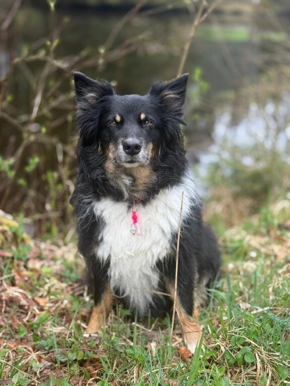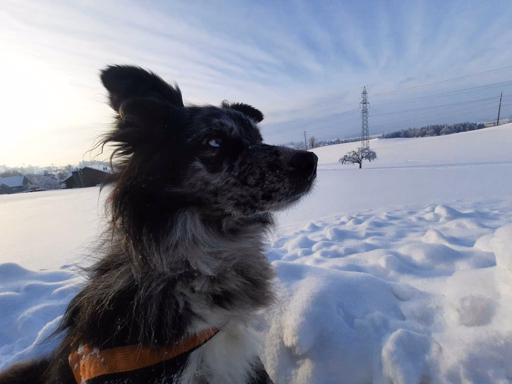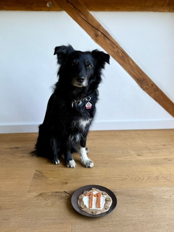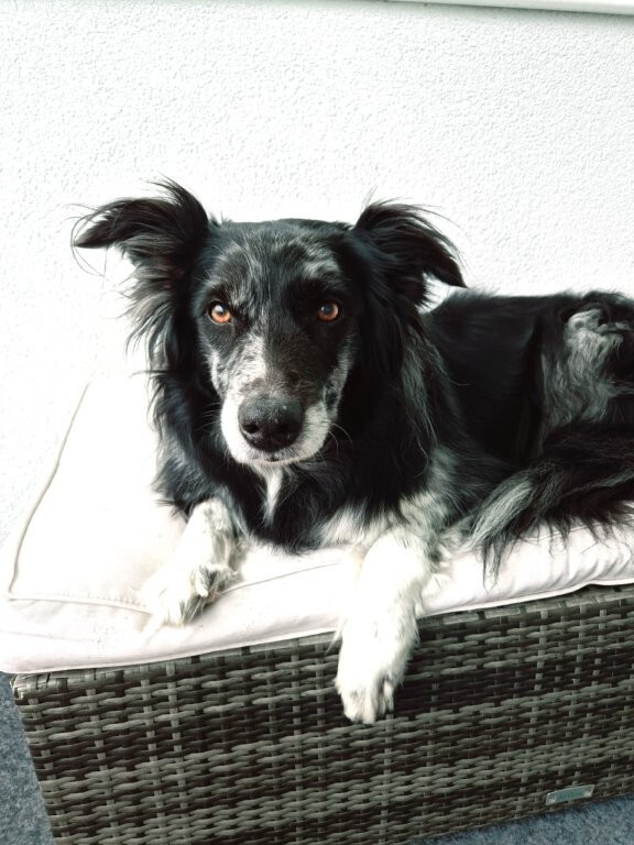 Joy stammt aus unserem allerersten Wurf mit Anny und Joker und hat sich am 30 Juli 2025 im Alter von 11 Jahren auf ihre letzte Reise gemacht. Ihre erste Reise hat sie mit mir im Alter Alter von 10 Wochen in die Schweizer Berge gemacht. Als wäre es gestern gewesen, kann ich mich noch so gut daran erinnern. Ihr Besitzer Rene hatte damals auf einer Alm in Samnaun gearbeitet und ich habe sie zu ihm gebracht. Ein kurviger, einsamer Schotterweg in naturbelassener Umgebung und am Ende kamen wir an einem Hof an, in dem gerade die Kühe gemolken wurden. Für mich war dies eine unbeschreiblich schöne Erfahrung und ich wusste, Joy hat in den Bergen unter den Kühen ihr perfektes Zuhause gefunden. Jeden Sommer verbrachte sie auf der Alp und wurde zu einer unentbehrlichen Arbeitskraft.