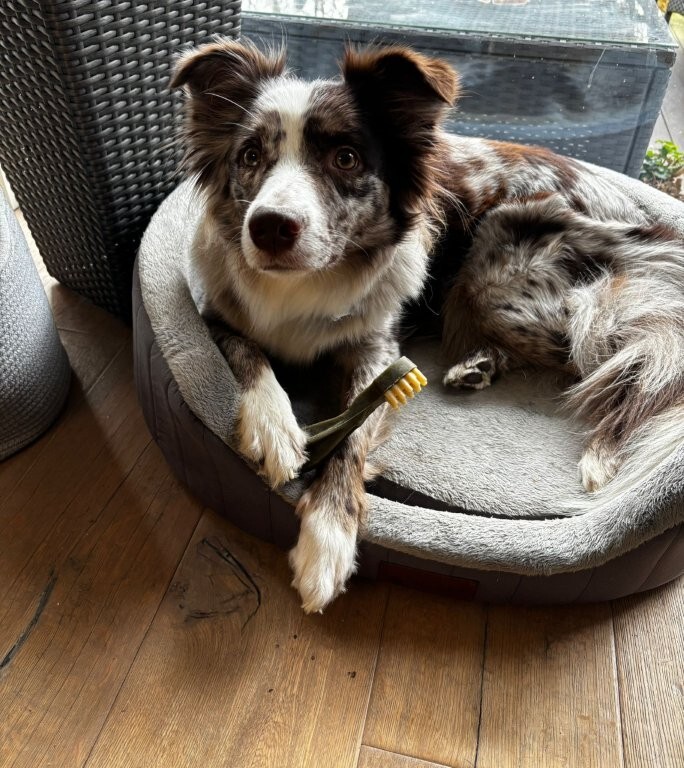 Ivy ist eine richtig tolle Hündin, die bei Alice und Georg im Landkreis Augsburg lebt und dort ein mega tolles Zuhause hat. Sie erinnert mich charakterlich sehr an beide Elterntiere. Von ihrem Papa Ishna hat sie ihr ausgeglichenes und sehr angenehmes Wesen, von Mama Momo Sanftheit und Freundlichkeit.