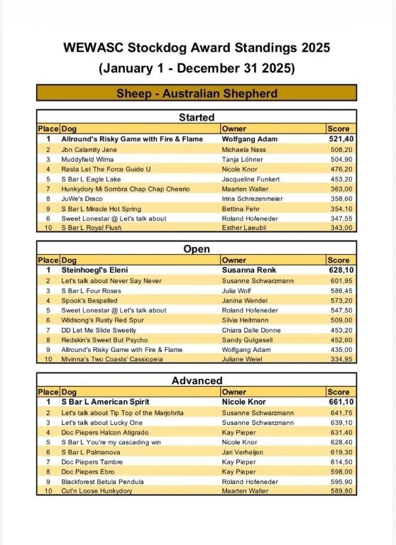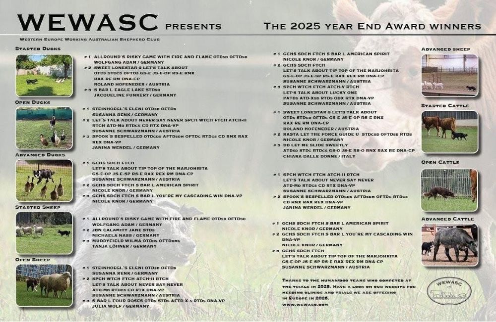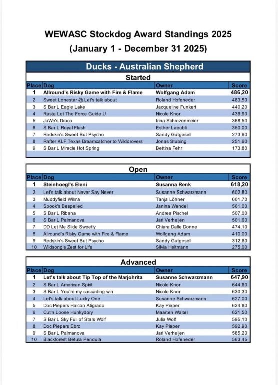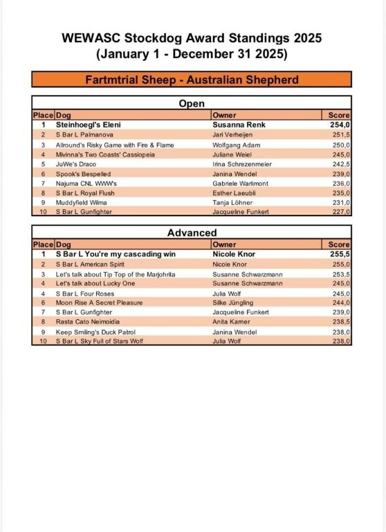 zum 1. Platz an Open Sheep and Open Ducks beim WEWASC yearend Award 2025!